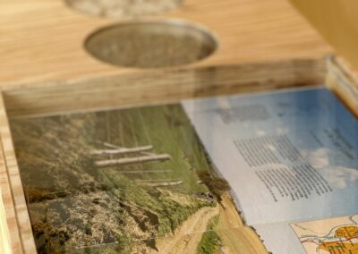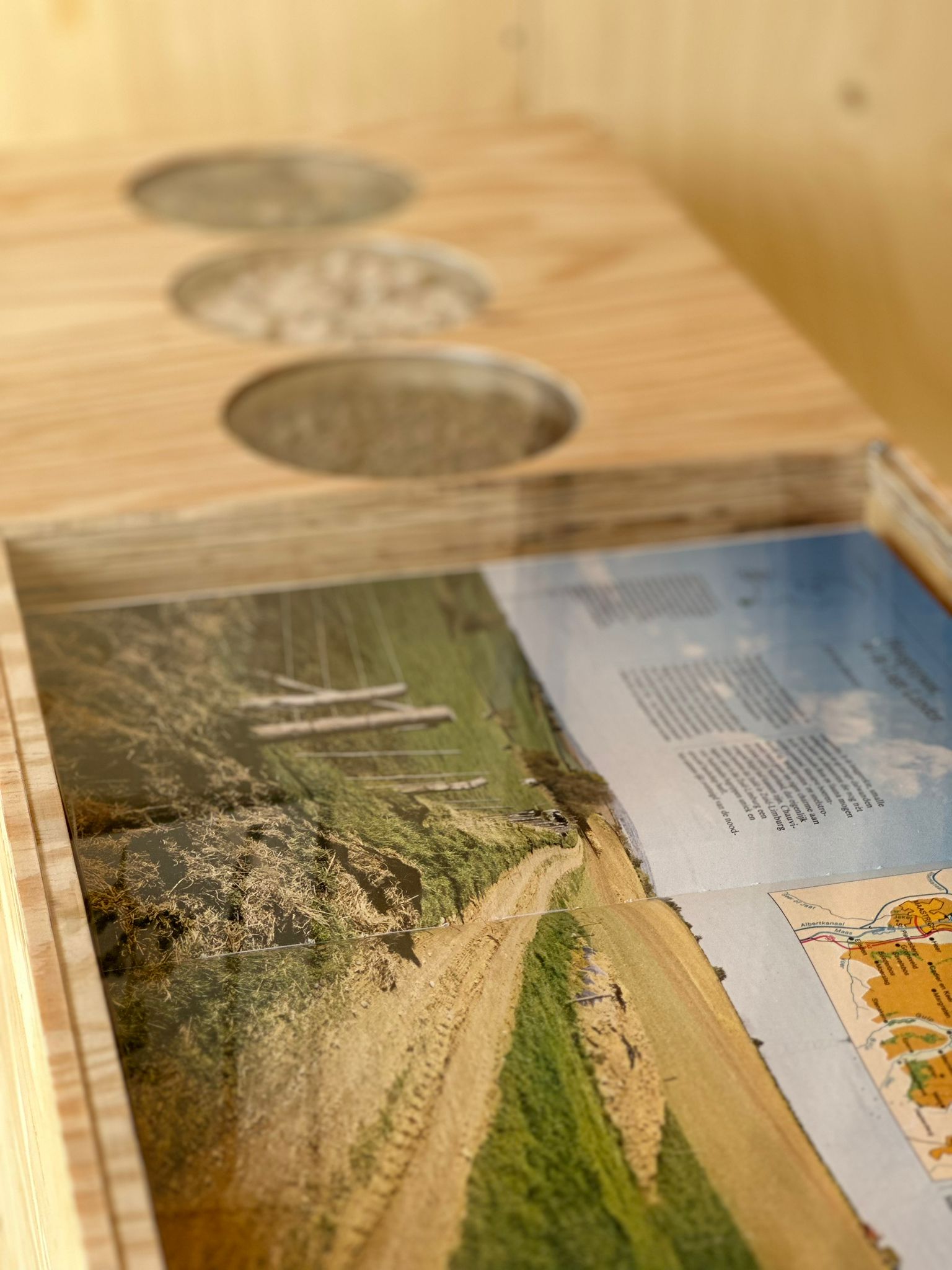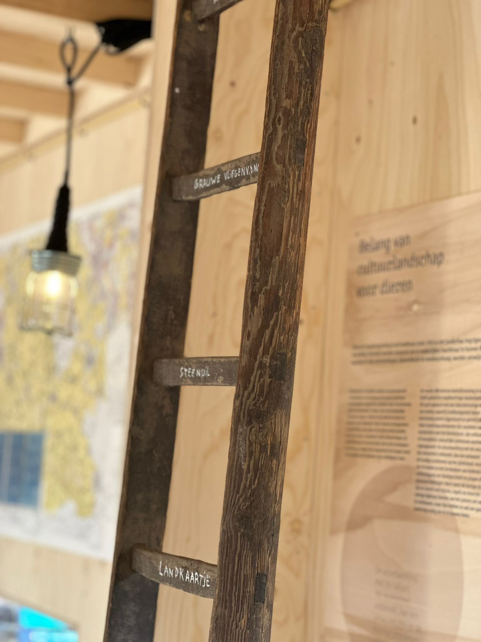 De Hooiwagen is gebaseerd op de hooiwagens die het hooi van het veld naar de hooischuur of hooimijt vervoeren. Een belangrijk moment in het jaar omdat hooi de voedselvoorraad voor de winter vormt. De Hooiwagen is van binnen ingericht als mobiel museum. In het mobiele museum liggen objecten (oude gereedschappen, objets trouvées), kunstwerken, en zijn verhalen te lezen, te horen en te zien over het boerenland. Een kleine bibliotheek met boeken en naslagwerken over het beheren van kleine landschapselementen, ecologie, dieren en planten verbonden aan het cultuurlandschap, geeft verdere diepgang. Maar ook bijvoorbeeld een zaden(ruil)bibliotheek van akkerkruiden, of gedroogde kruiden die gebruikt kunnen worden om thee mee te maken. De thematiek en inrichting wordt ieder jaar aangepast.