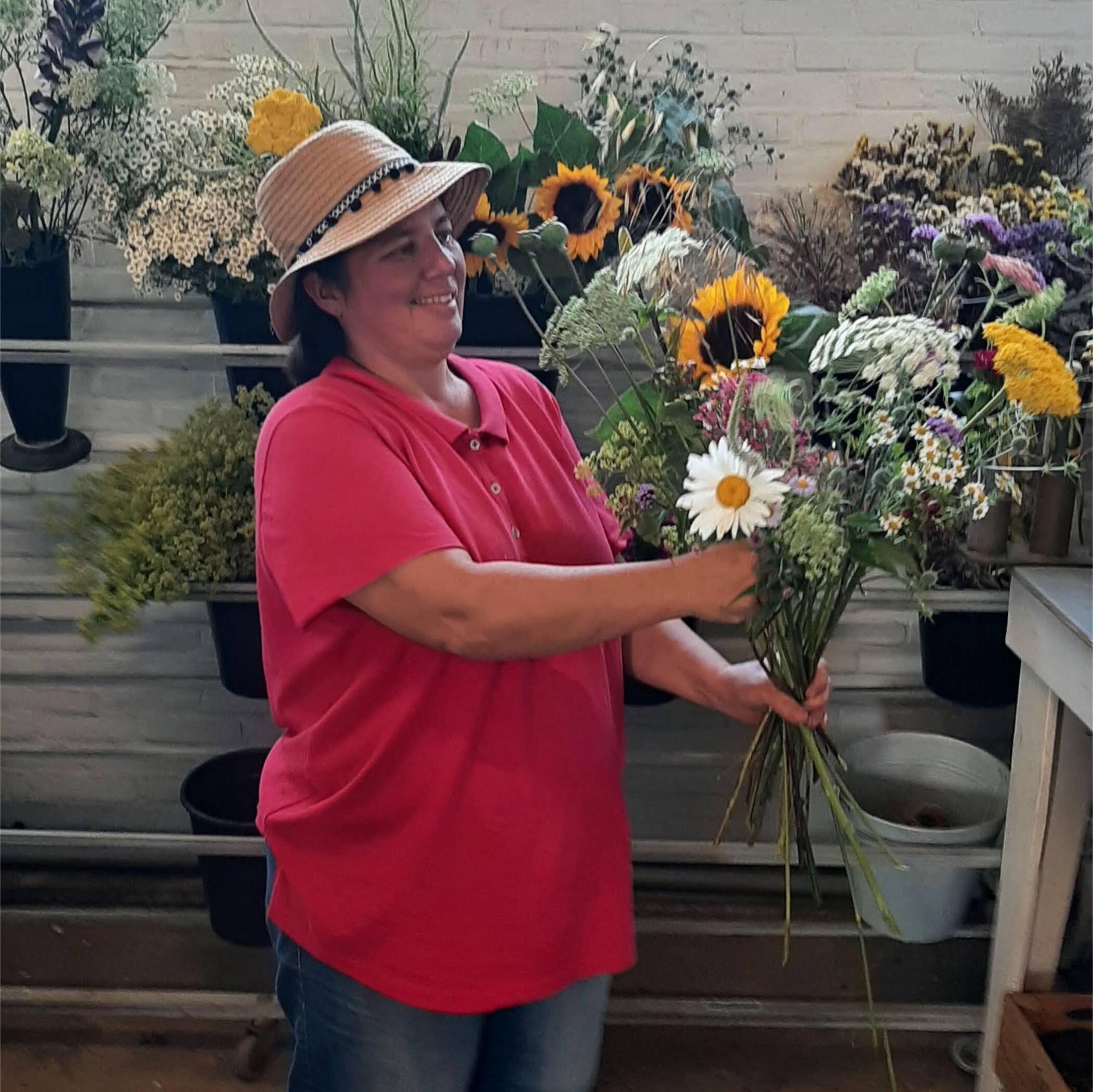 Seizoensgeluk Kim van Waardenburg: is een echte ambachtsvrouw, die zowel met wol als met bloemen prachtige creaties maakt. Ze kweekt haar eigen bloemen – volledig zonder bestrijdingsmiddelen – en verwerkt die tot stijlvolle boeketten en bloemwerken voor uiteenlopende gelegenheden, van bruiloft tot afscheid.