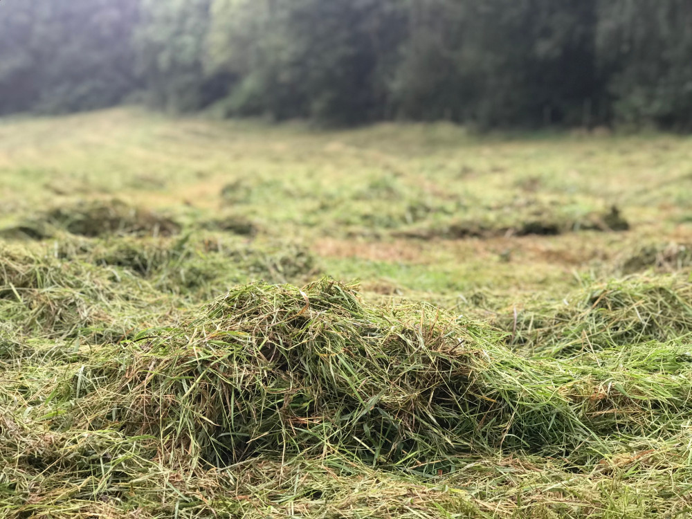 Vanochtend vroeg is het veld gemaaid. Komende dagen gaan we het dagelijks draaien zodat het kan drogen om het later te laten dijken en hooibalen te laten maken.