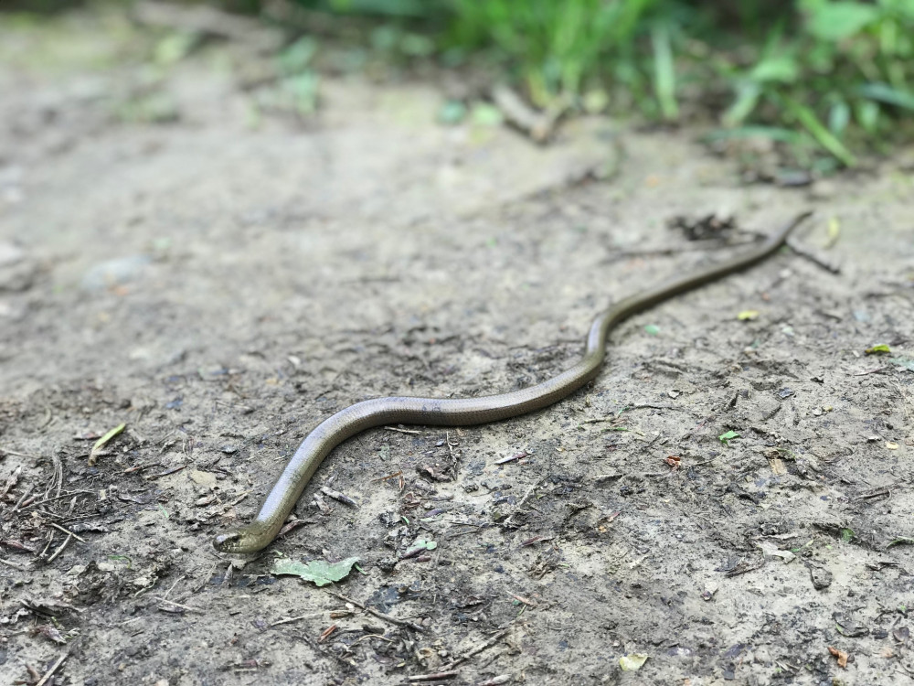 Vanmiddag zijn we met twee studenten van Interdisciplinary Arts Maastricht (iArts) – Maastricht Institute of Arts in ons veld Op ‘t Rentelen geweest. Jaarlijks geven wij les aan deze interdisciplinaire opleiding waarbij het landschap centraal staat. Tijdens het werken in het veld kwamen we deze prachtige hazelworm tegen die aan het zonnen was op het pad. We hebben voor een van de studenten planten met de zeis omgemaaid. Deze moesten weg omdat ze de ruimte van andere te veel overnamen en dominant konden worden. We laten er altijd één staan zodat ze niet volledig verdwijnen. De planten gaan gebruikt worden om kleur-vloeistoffen uit te onttrekken om een batik werk te maken. Om deze in haar project te gebruiken die over monocultuur gaat en een relatie legt met de cultuur uit haar eigen land en het koloniale verleden van het land. Omdat ze alleen planten wilde gebruiken voor de kleurpigment die niet ‘opgeofferd’ hoefde te worden hebben we samen bekeken hoe we de planten die toch al verwijderd diende te worden juist voor dit doel konden oogsten. Een gebruik van ons stuk land zoals wij die voor ogen hebben, om alles dat we oogsten of hoe we beheren, allereerste de natuur ten goede komt.